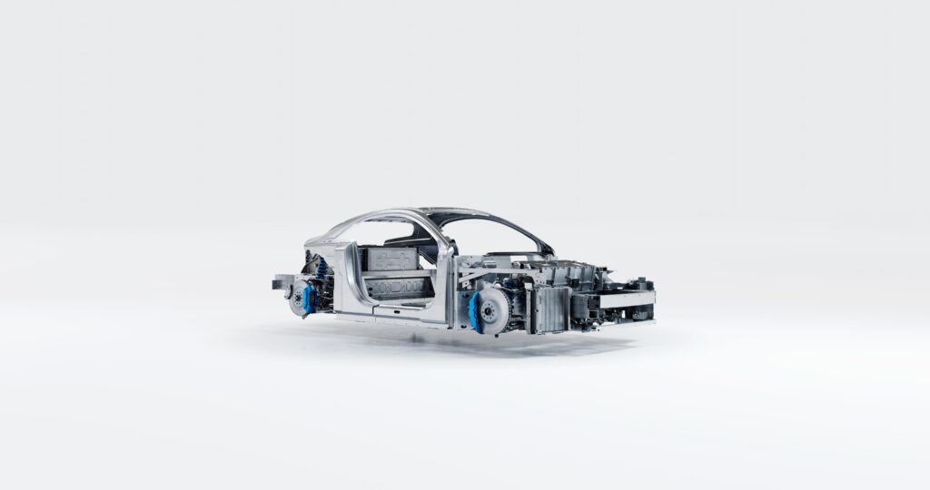 Die cell-to-pack-batterijen zijn geïntegreerd in het platform, draaien op 800 volt en kunnen dus supersnel opladen. Op de achteras zit dan weer een nieuwe e-axle met twee elektromotoren en een omvormer van siliciumcarbide (SiC). Dat betekent veel kracht, een ultrasnelle respons, torque vectoring en een hoge efficiëntie.