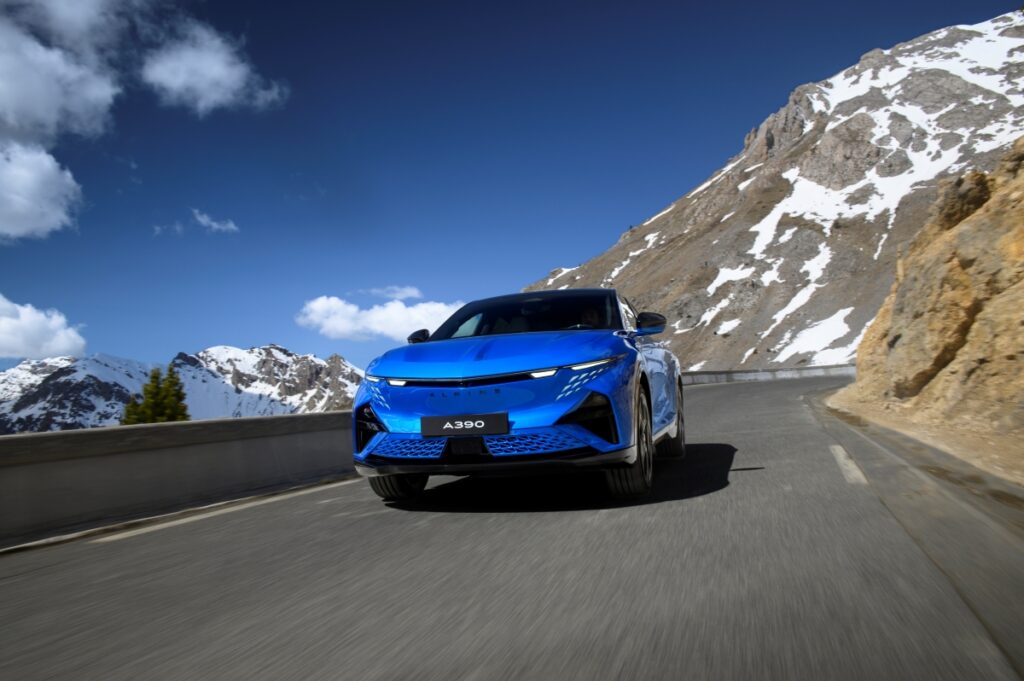 De A390 is een zuiver Frans product, en dat zul je geweten hebben aan de talrijke Franse vlaggen en driekleuren die her en der verspreid zitten in en rond het koetswerk. Het model wordt trouwens gebouwd in de historische fabriek van Dieppe, met motoren uit Cléon, batterijen uit Duinkerke en assemblage in Douai. De banden zijn ontwikkeld met Michelin, de luidsprekers met Devialet. Zelfs de aerodynamica is doordacht in samenwerking met het Alpine Racing-team, bekend van de Formule 1 en het WEC-kampioenschap.