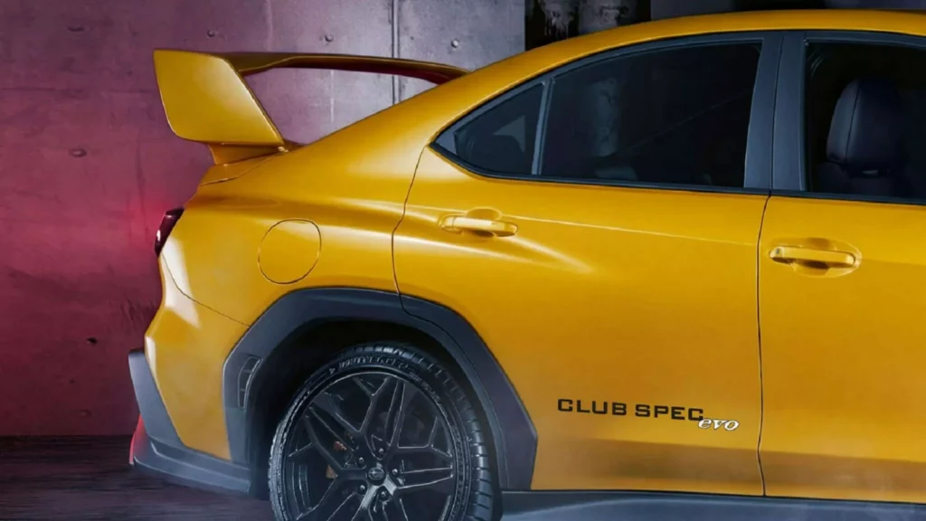 Die nieuwe WRX AWD Club Spec Evo verschijnt in een zeer beperkte oplage en is gebaseerd op de huidige generatie WRX, maar krijgt een aantal visuele en sportieve upgrades. Het meest opvallend is de felle Sunrise Yellow-lak, gecombineerd met een grote achtervleugel die doet denken aan klassieke STI-modellen uit de jaren 2000. Daarmee wil Subaru de link met zijn motorsportgeschiedenis extra benadrukken.