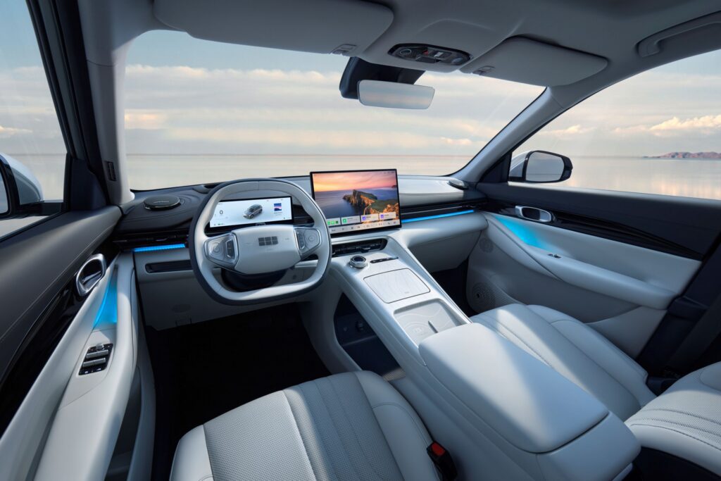 Het tweede model dat onze kant uitkomt, is de 4,62 meter lange en dus iets compactere E5. Die volledig elektrisch aangedreven SUV heeft wat Geely 11-in-1 Electric Drive-technologie noemt, de finesses ervan zullen we binnenkort wel kunnen ontdekken. Het opnieuw Pro gedoopte instapmodel heeft een batterij van 60,22 kWh, volledig opgeladen is die goed voor een rijbereik tot 430 kilometer. De Pro+ en Max+ komen met een exemplaar van 68,39 kWh, daar raak je respectievelijk (tot) 475 en 450 kilometer ver mee.