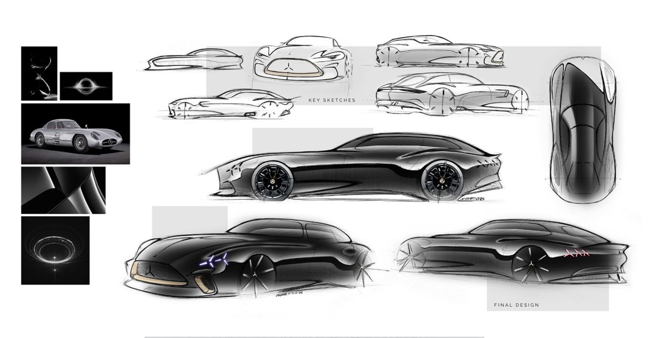 De designer wou naar eigen zeggen vooral een auto met extreme proporties, gladde oppervlakken en een lichtsignatuur met Mercedes-sterren, zoals we dat tegenwoordig wel vaker zien op recente modellen. Hij liet zich inspireren door puurheid van een Mercedes 300 SLR en de houding van een SLS. Wij vinden het resultaat alvast prachtig!