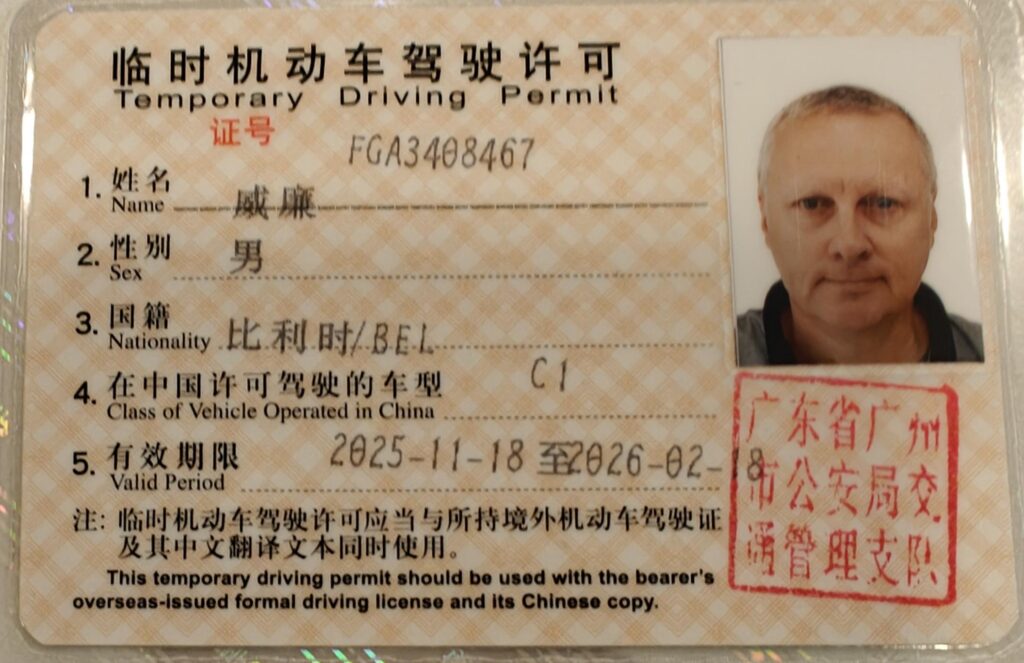 Je mag niet zomaar met je Belgische of internationaal rijbewijs de weg op in China. Daarvoor moet je eerst een soort van sensibiliseringscursus volgen bij de lokale Police Department. Een surreële beleving, was dat. We werden in een lokaal vol Chinese verkeersdelinquenten gezet (althans, daar leek het toch op) waar we een Chinese film moesten bekijken met het ene na het andere op camera vastgelegde ongeval of crash. De beelden waren bij momenten vrij hard waarbij we zelfs scènes te zien krijgen waar de chauffeur het vermoedelijk niet gehaald zal hebben. Het moest wellicht een shock-effect geven, maar onze Chinese collega-cursisten leken weinig onder de indruk. En hoewel we van het schreeuwerige, bijna militaristische Chinese verhaal geen jota begrepen, waren we toch geslaagd en mochten we met ons tijdelijk rijbewijs op zak het politiekantoor verlaten. Echt absurd, maar regels zijn regels in China.