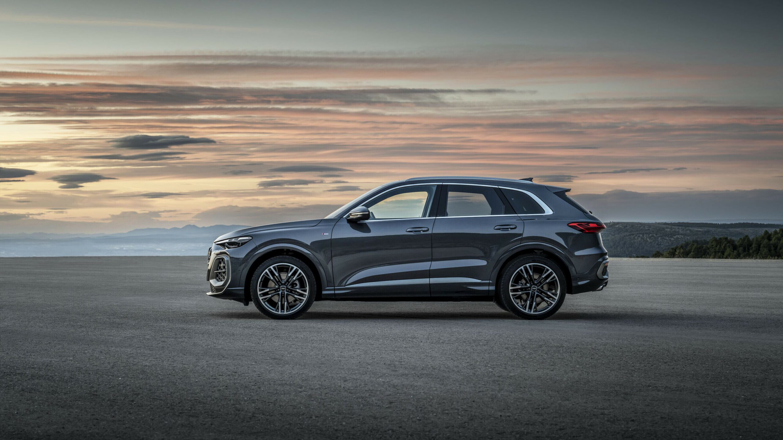 Van buiten oogt de Audi Q5 precies zoals je van een moderne Audi verwacht. Het design is strak, zelfverzekerd en duidelijk premium, zonder te vervallen in overdreven agressie. De brede Singleframe-grille domineert de neus, geflankeerd door scherp getekende LED-koplampen die de Q5 een daadkrachtige blik geven. De proporties kloppen: compact genoeg om niet log aan te voelen in de stad, breed genoeg om stevig op de weg te staan en hoog genoeg om dat typische SUV-overzicht te bieden. De flanken zijn subtiel gespierd, met een strakke schouderlijn die visueel lengte toevoegt.