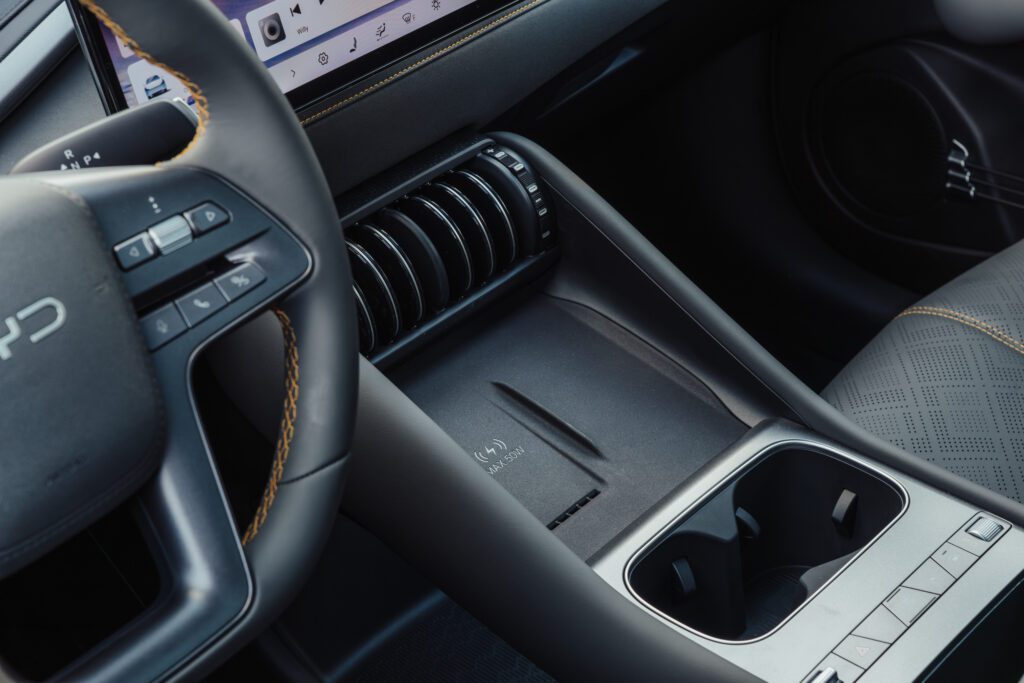 En toch is dat nog niet de grootste verandering geweest. De BYD Atto 3 Evo staat namelijk op een gloednieuw platform. In plaats van altijd de aandrijving op de voorwielen te hebben, is er nu de keuze tussen achter- of vierwielaandrijving. De batterij groeide van 60,48 kWh naar 74,8 kWh en draait bovendien op een spanning van 800 V, wat betekent dat je met 220 kW kan snelladen. De laadtijd van 10-80% duurt nu 25 minuten, 13 minuten sneller dan voorheen. Al doen sommige concurrenten het niet per se slechter met hun 400 V-batterijen. Maar het blijft een welkome verbetering. Bovendien is de V2L-functie standaard.