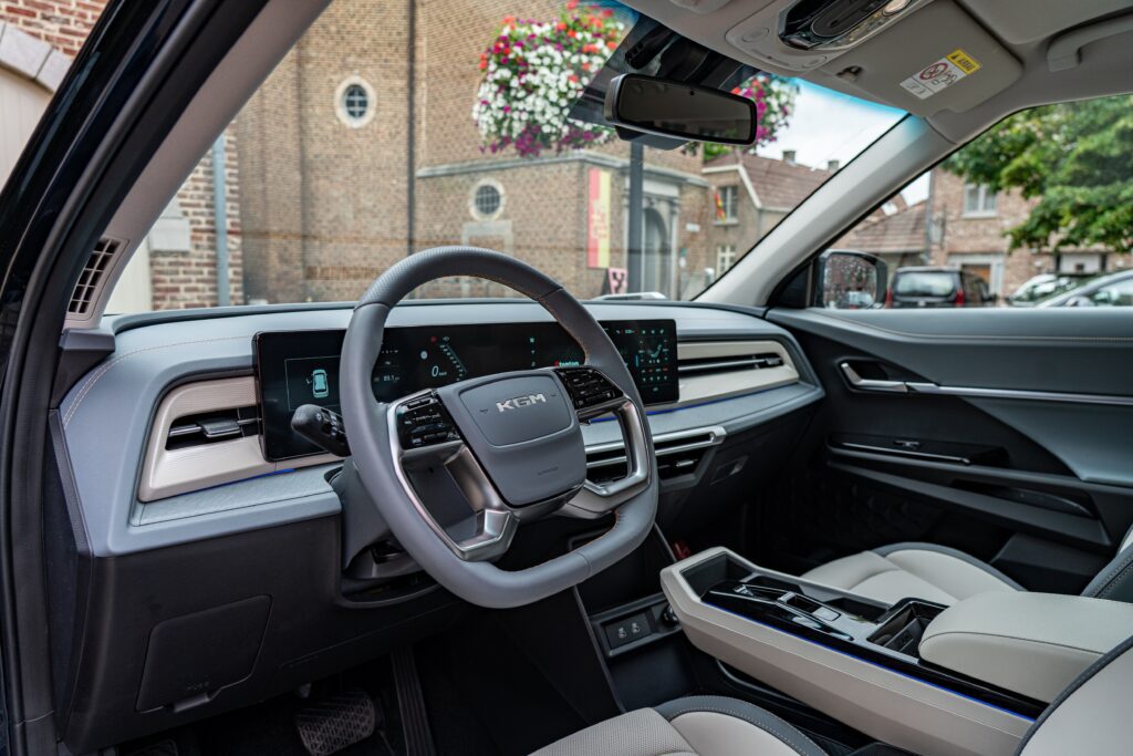 Verder moet je vooral niet te sportief willen rijden met de KGM Torres Hybrid. Ondanks het relatief lage gewicht (voor een hybride SUV van dit formaat) van 1,7 ton blijft de koets niet altijd even stabiel in de bochten. En de Nexen-banden van onze testwagen konden ook niet goed overweg met een vettig of nat wegdek, waarbij de voorwielen meer dan eens begonnen door te slippen als we snel even wilden optrekken. Maar qua comfort hebben we niets te klagen: oneffenheden worden soepel en schokvrij verwerkt, en ook de zetels zitten redelijk goed. Lange afstanden zijn dus geen probleem. De benzinetank van 50 liter geeft een rijbereik van ongeveer 700 km, maar op de snelweg zal het wat minder zijn.