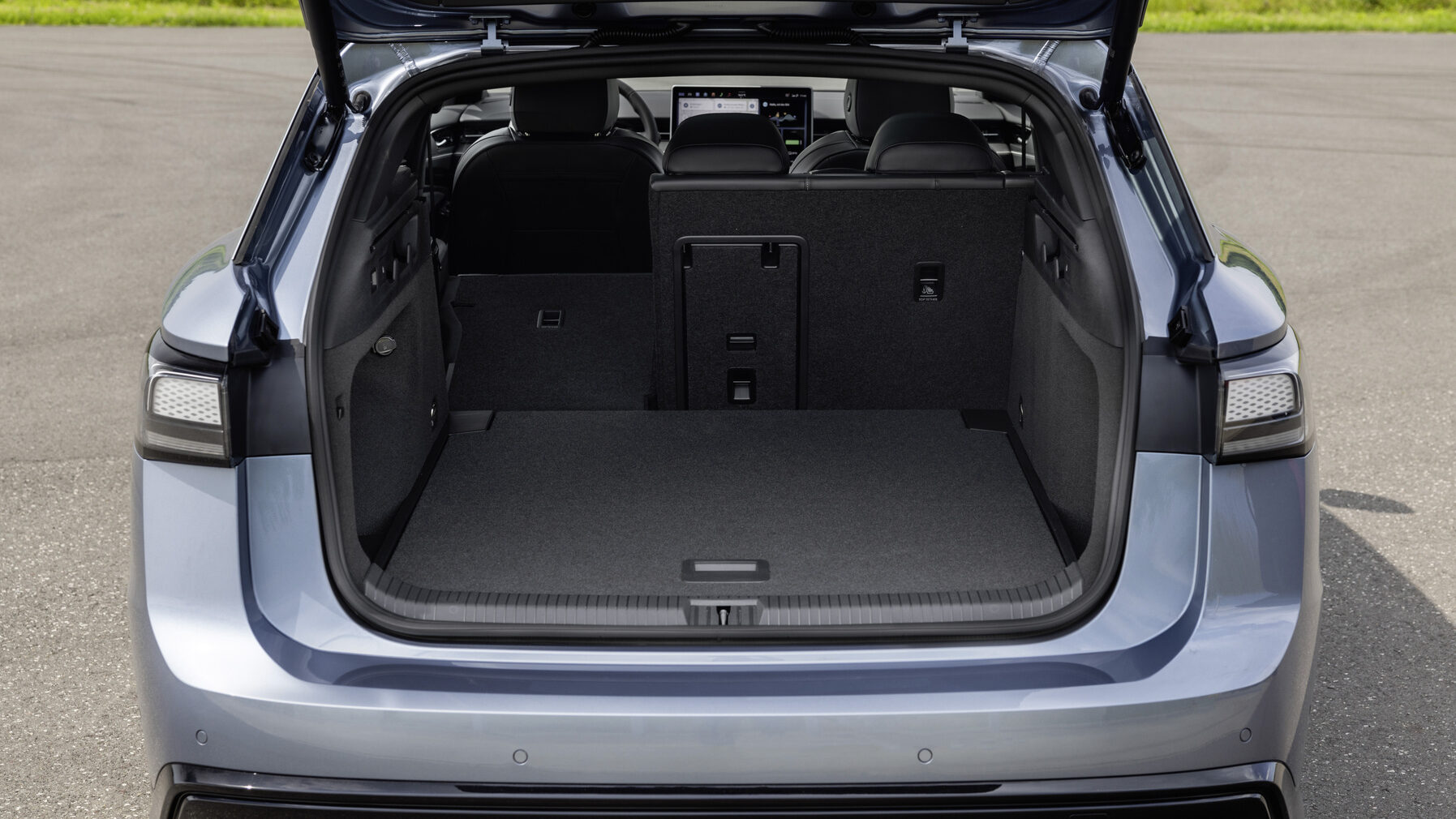 Deze net geen 5 meter lange ID.7 (4,96 m om precies te zijn) is geen opvallende schoonheid en we zijn eerder geneigd de break-versie visueel iets beter geslaagd te vinden dan de berline, maar dat hadden we bij de Passat ook al. Binnenin is er vorstelijk veel ruimte, zeker ook voor de achterste passagiers. Het helpt natuurlijk als je een wielbasis van nagenoeg 3 meter hebt. De Tourer ziet zijn laadvolume tegenover de berline dan ook nog eens met zo’n kleine 100 liter verbeterd, zodat hij met 5 passagiers meer dan 600 liter kofferinhoud heeft en met neergeklapte achterbank meer dan 1.700 liter bagageruimte veil heeft, makkelijk toegankelijk via een grote achterklep.