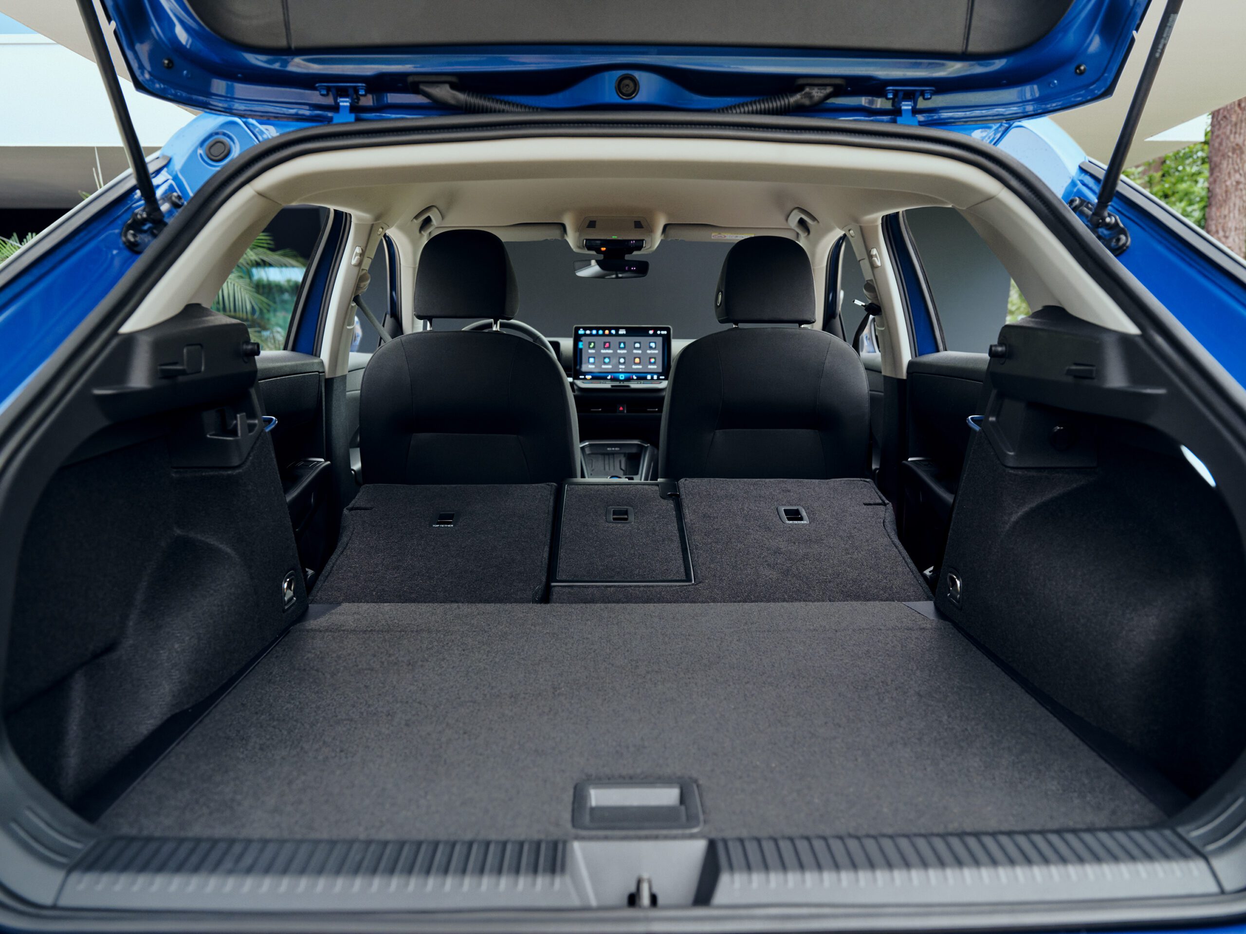 De Volkswagen T-Roc 2025 is trouwens 12 centimeter langer geworden dan zijn voorganger (nu 4,37 m lang), en dat merk je aan boord. Op de achterbank is er nu 3 cm extra beenruimte, waardoor volwassenen probleemloos achter elkaar kunnen zitten. En ook het koffervolume van 475 liter is praktisch voor een auto van dit segment. Een verschuifbare of instelbare achterbank ontbreekt echter, maar je kan hem wel in drie delen neerklappen.
