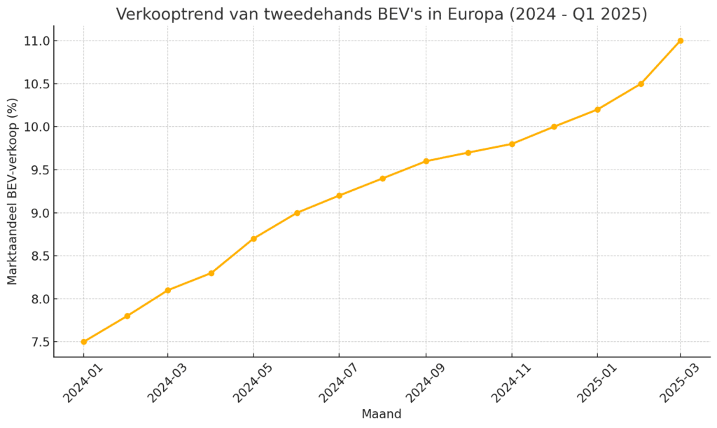 - Vergelijking met nieuwmarkt: In 2024 haalden EV’s nog meer dan 28% in de nieuwverkoop. De kloof tussen aanbod en vraag op de tweedehandsmarkt is dus groot.