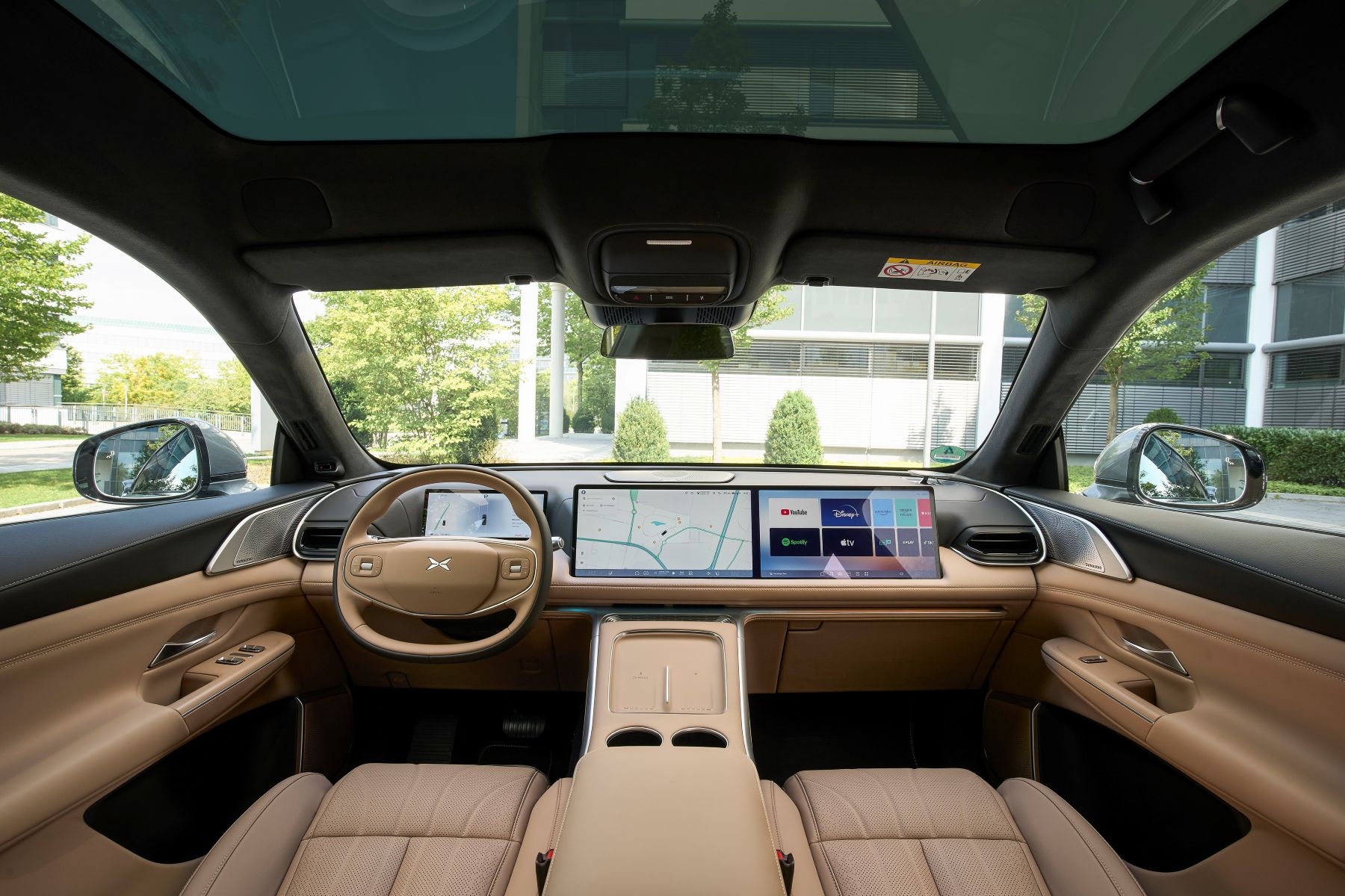 Het voordeel van zijn forse taille is natuurlijk wel de zee van ruimte die het topmodel van XPeng biedt. Hier zit je op alle plaatsen prinsheerlijk te genieten van de comfortabele luchtvering en de uiteenlopende massage-instellingen van de met Nappaleder beklede fauteuils. Er is zelfs een massagefunctie voorzien voor de achterste zitplaatsen! Meer premium wordt het echt niet. En in tegenstelling tot de G6 die het met één groot centraal multimediascherm moet stellen (naast nog een kleiner scherm voor je neus, weliswaar), krijg je hier twee joekels van schermen waardoor de passagier ook voor zijn of haar eigen entertainment kan kiezen. Wel zo handig als je even geen gezellig gesprek wil voeren met de andere passagiers.